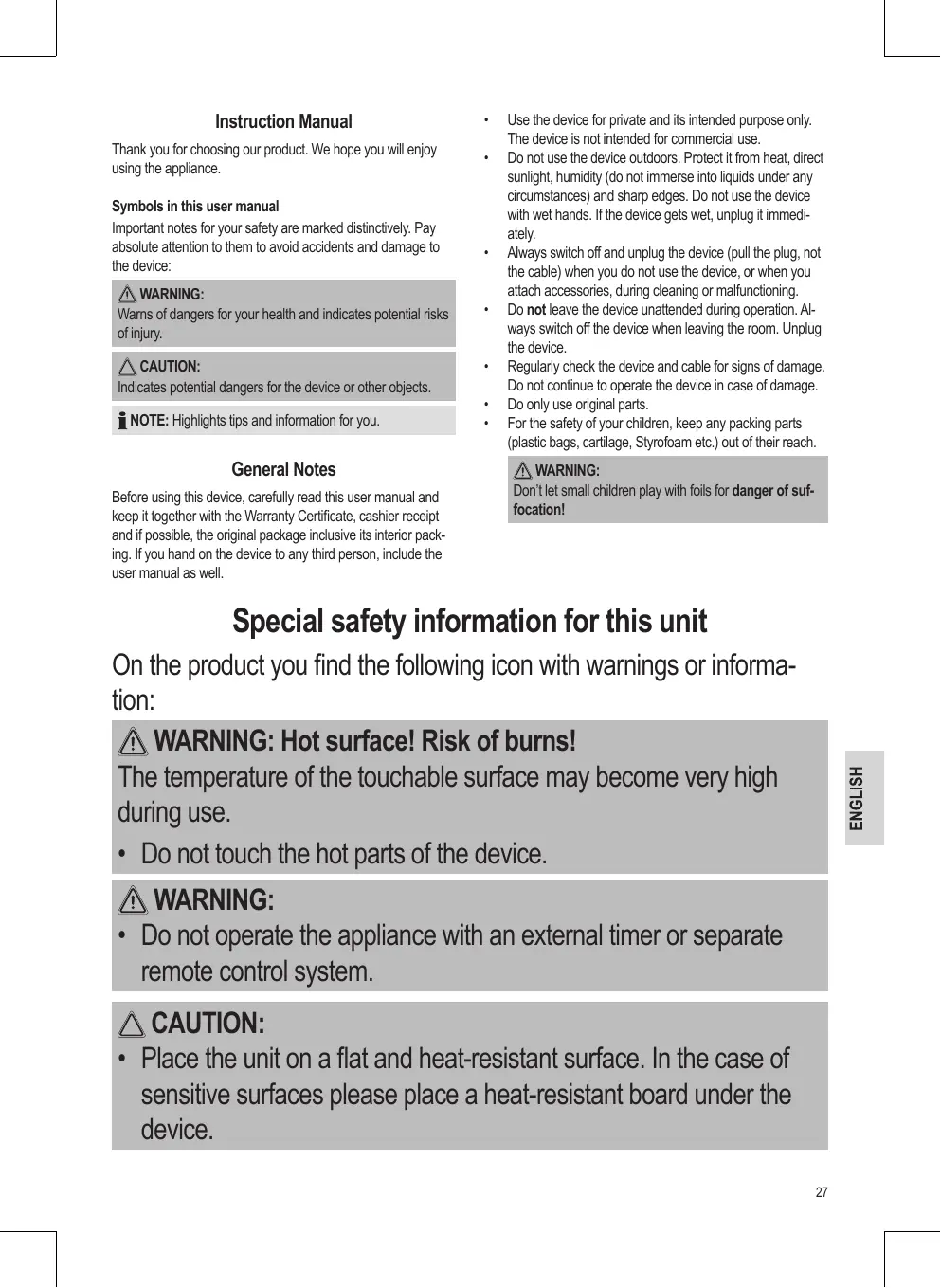 À AVERTISSEMENT : Surface chaude ! Risque de brûlures !