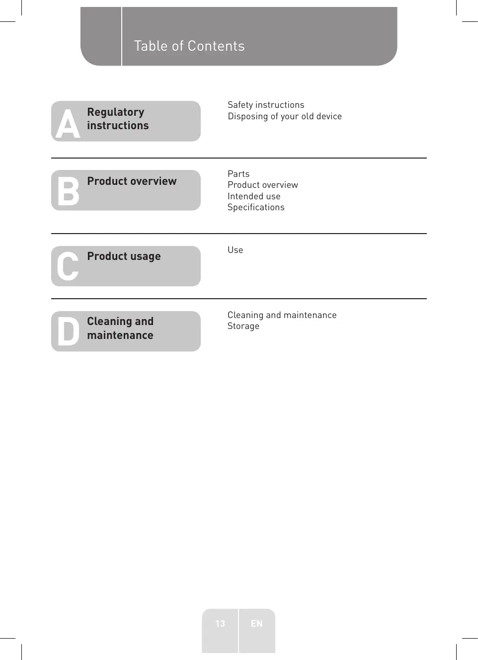 | D Cleaning and maintenance | Cleaning and maintenance Storage |