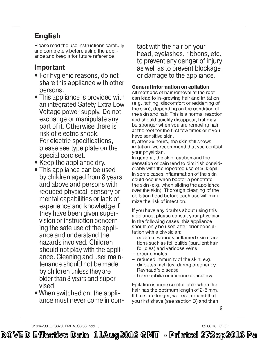 Download the instructions for your Epilator in PDF format for free! Find your manual SE3 321 - BRAUN and take your electronic device back in hand. On this page are published all the documents necessary for the use of your device. SE3 321 by BRAUN.