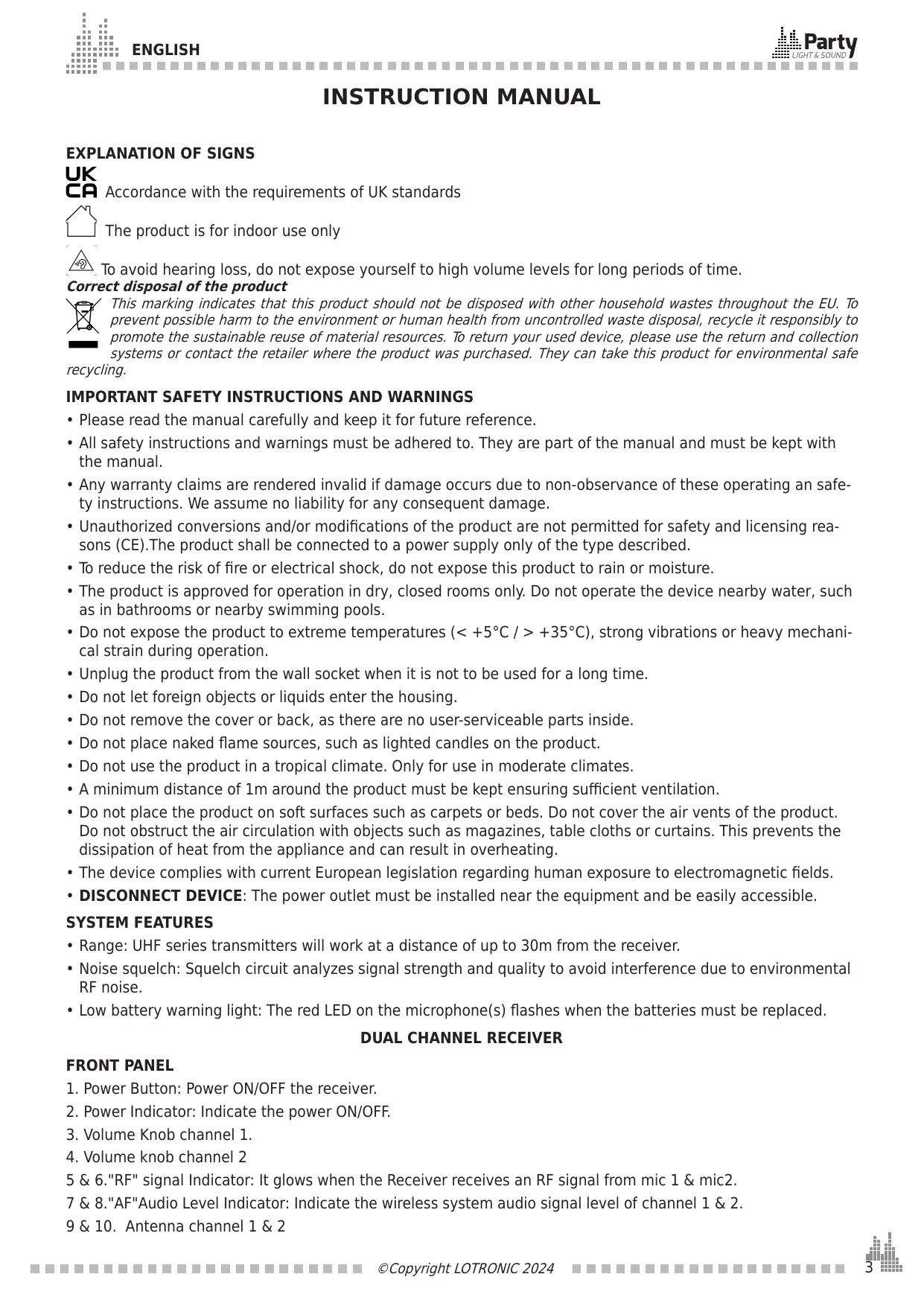 USER MANUAL PARTY-200UHF PARTY LIGHT&SOUND