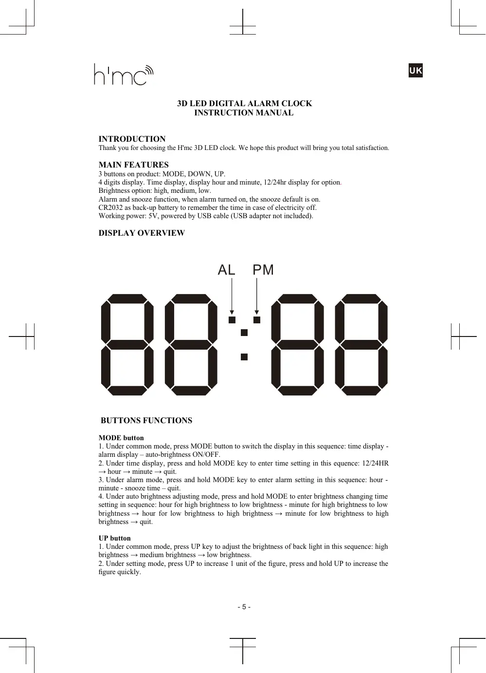 USER MANUAL HMC LEDCLBK ONEARZ