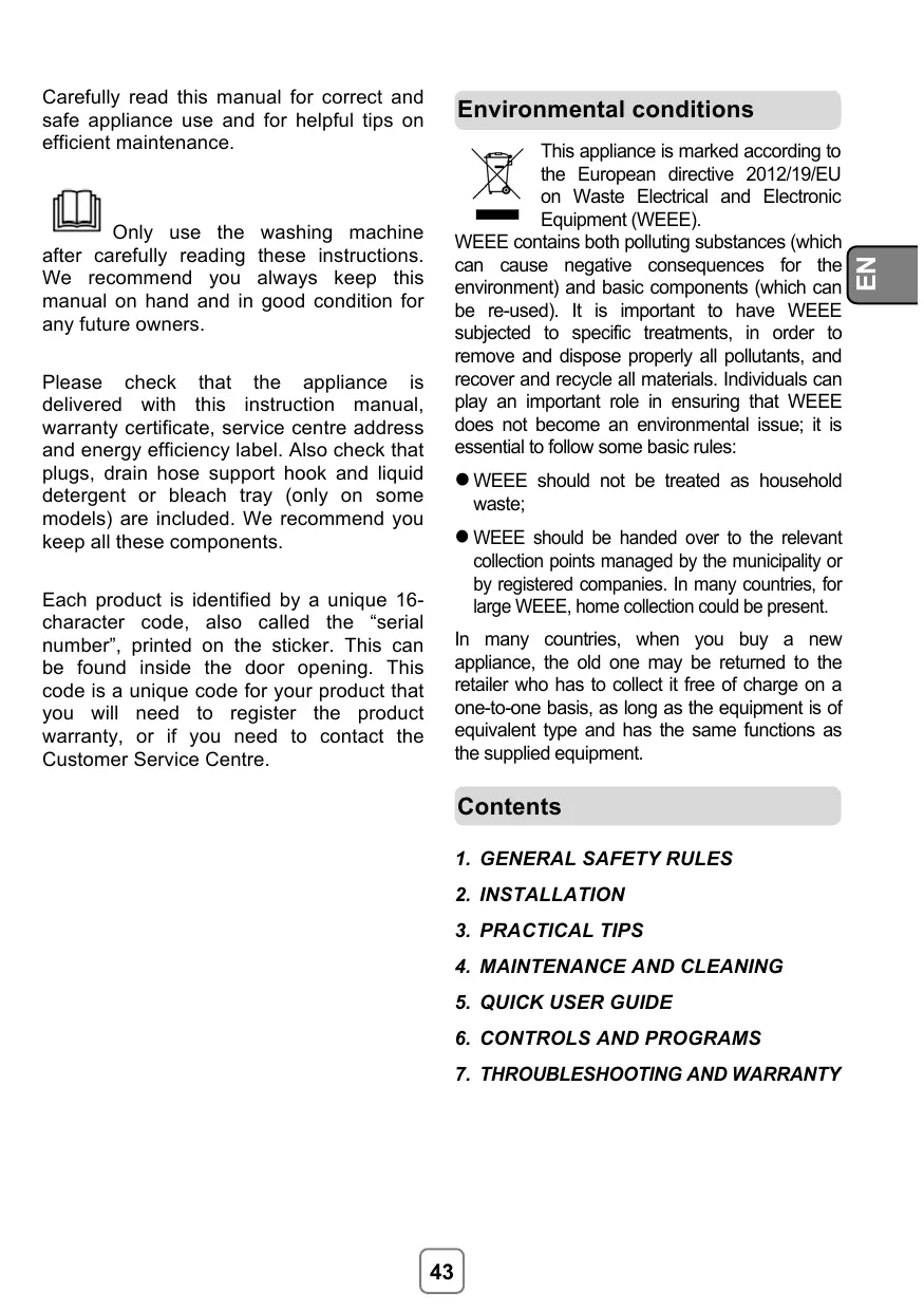 soulevez pas la machine à laver par les boutons ou par le tiroir à détergent, ne jamais faire reposer l'appareil sur le hublot.
