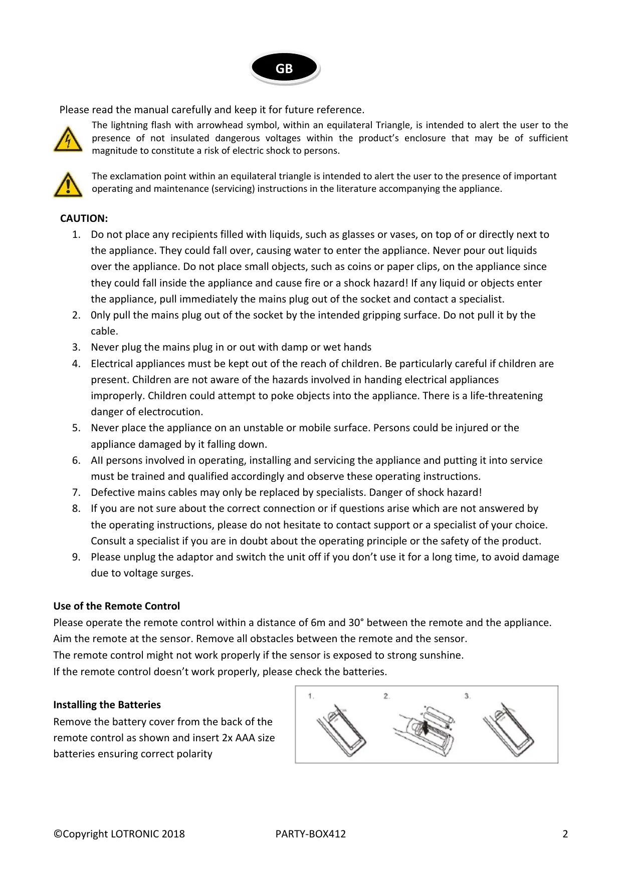 ©Copyright LOTRONIC 2018 PARTY-BOX412