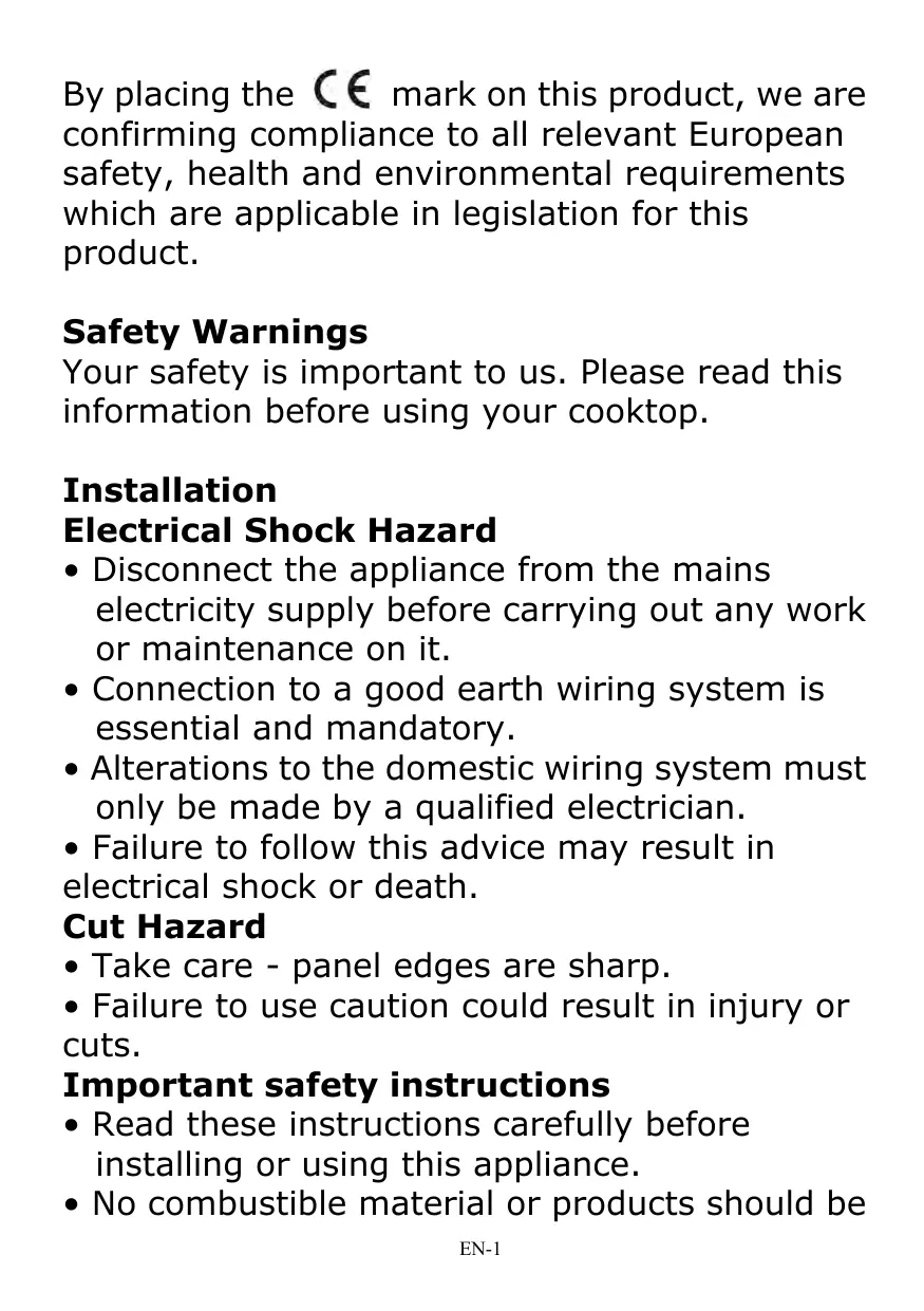 CE Norme appliquée : EN 60350-2 pour les appareils de cuisson électriques à usage domestique - Partie 2