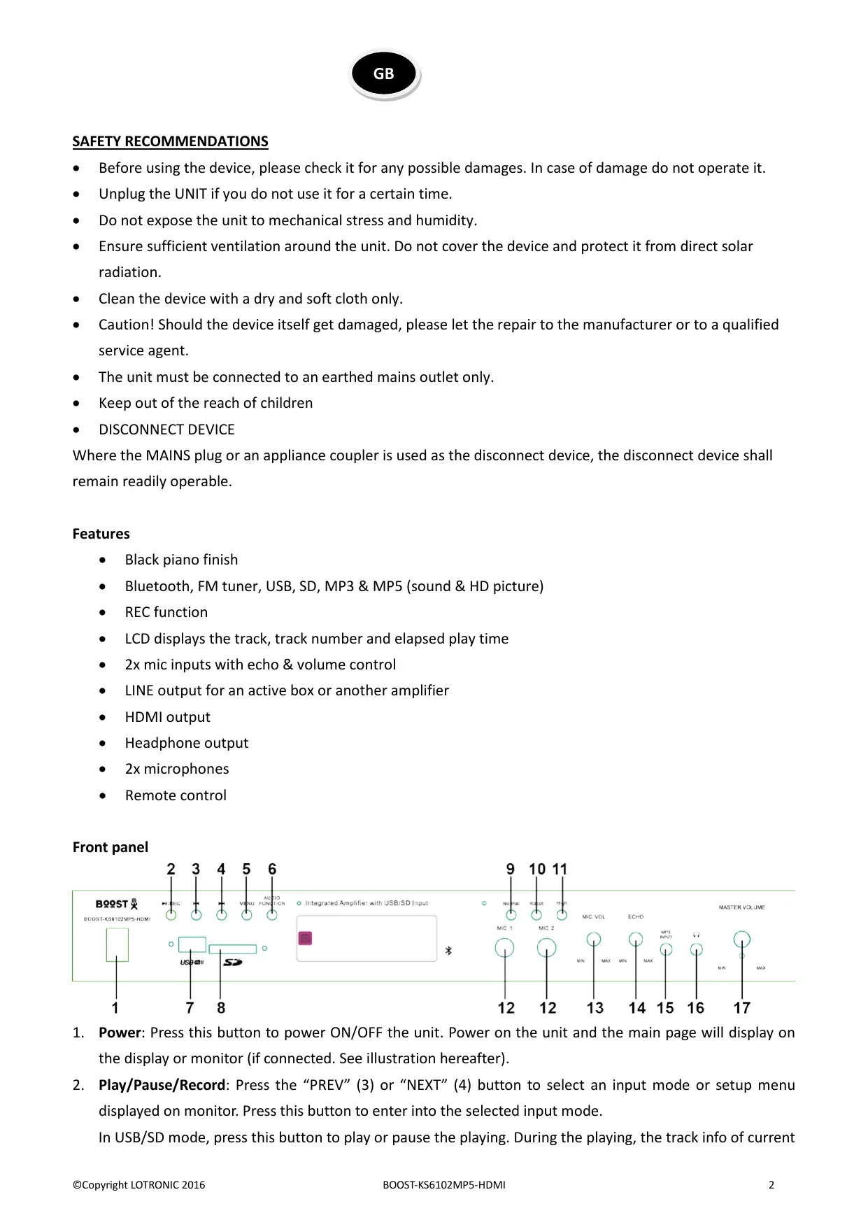 ©Copyright LOTRONIC 2016 BOOST-KS6102MP5-HDMI 9