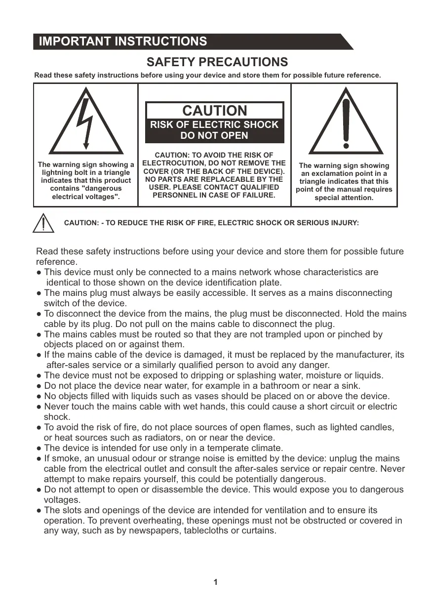 MPORTANT INSTRUCTIONS SAFETY PRECAUTIONS Read these safety instructions before using your device and store them for possible future reference.