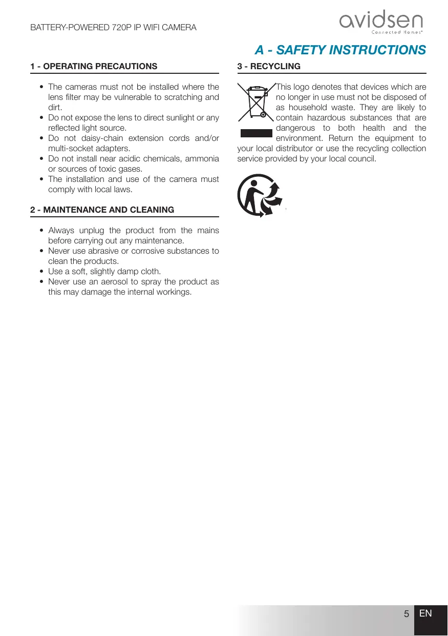 3 - RECYCLING The cameras must not be installed where the lens fiter may be vuinerable to scratching and dirt.