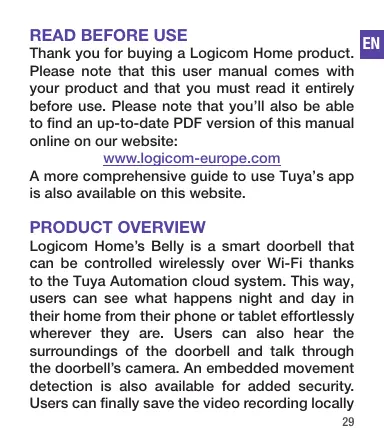 Belly - Sonnette de porte LOGICOM - Free user manual and instructions