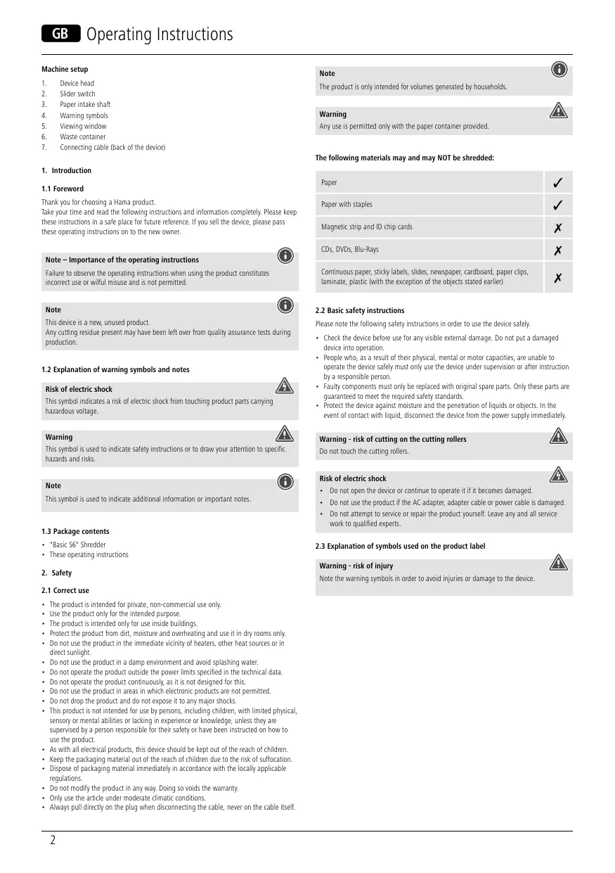 Download the instructions for your Fournitures de bureau in PDF format for free! Find your manual Destructeur de documents - HAMA and take your electronic device back in hand. On this page are published all the documents necessary for the use of your device. Destructeur de documents by HAMA.