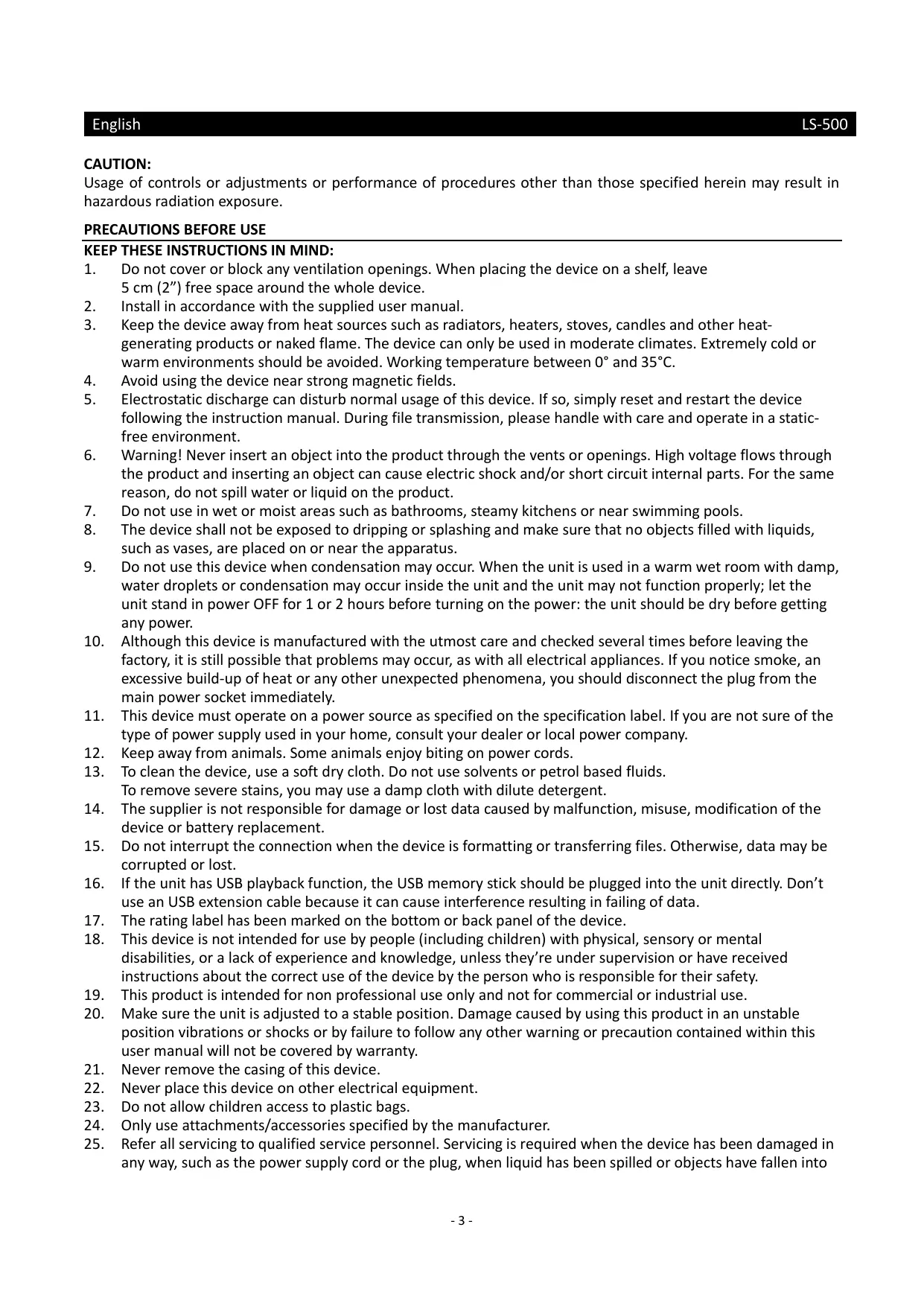 CAUTION: Usage of controls or adjustments or performance of procedures other than those specified herein may result in hazardous radiation exposure.
