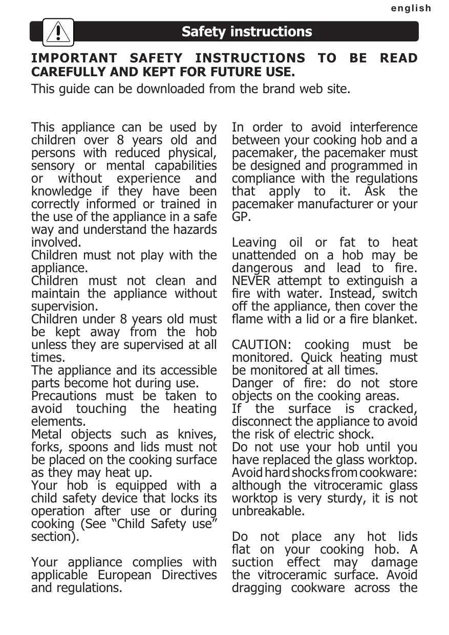 Ne plus utiliser votre table avant changement du dessus verre. Evitezleschocsaveclesrécipients: la surface verre vitrocéramique est très résistante, mais n'est toutefois pas incassable.