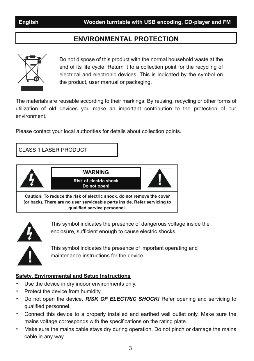 2) Support de retenue du couvercle du phonographe Haut-parleurs Connecteur USB Touche POWER Touche RECORD Sélecteur FUNCTION Réglage du VOLUME Rétroéclairage du syntoniseur ) Afficheur LCD ) Capteur de la télécommande ) Indicateur POWER ) FM ST. Indicateur 3) Ajustez le volume en tournant le réglage de VOLUME.