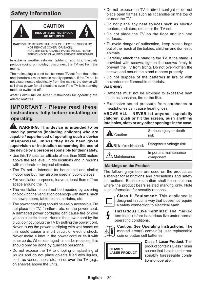 Thank you for choosing our product. You'll soon be enjoying your new TV. Please read these instructions carefully. They contain important information which will help you get the best from your TV and ensure safe and correct installation and operation.