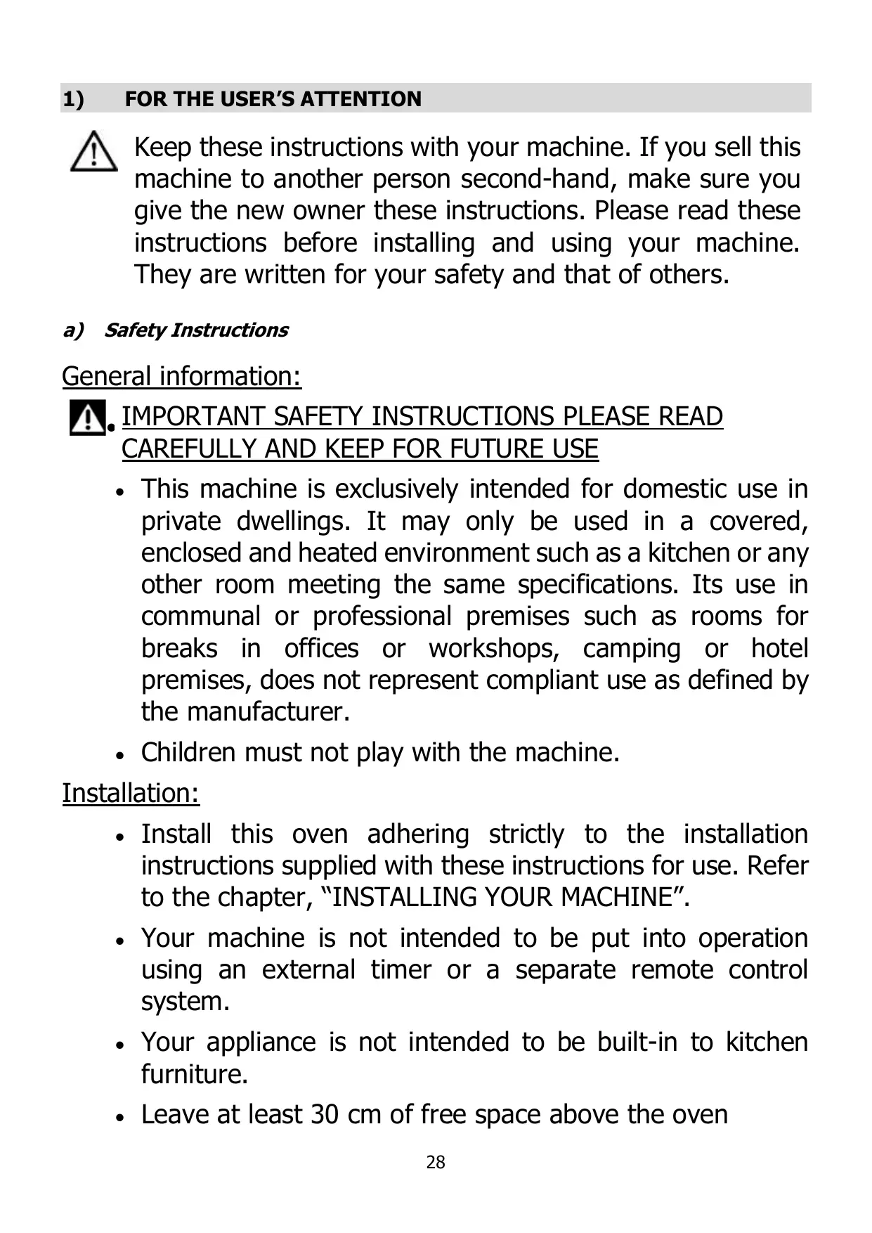 FOR THE USER'S ATTENTION A Keep these instructions with your machine. If you sell this