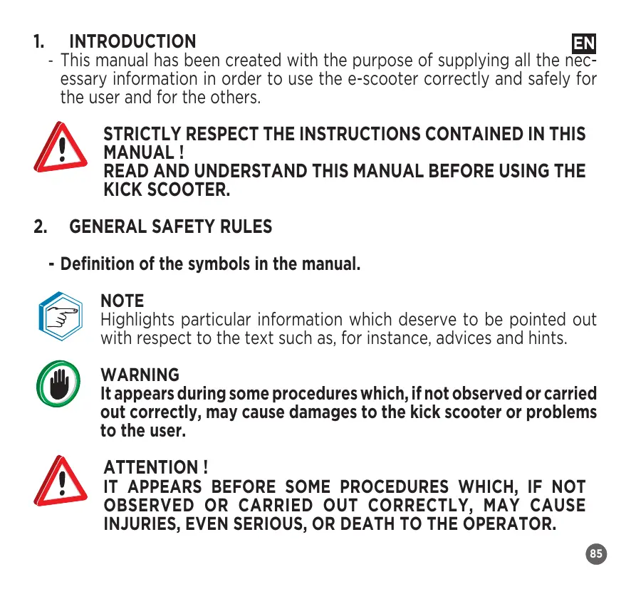 LIRE ET COMPRENDRE CE MANUEL AVANT D’UTILISER LA TROTTINETTE.