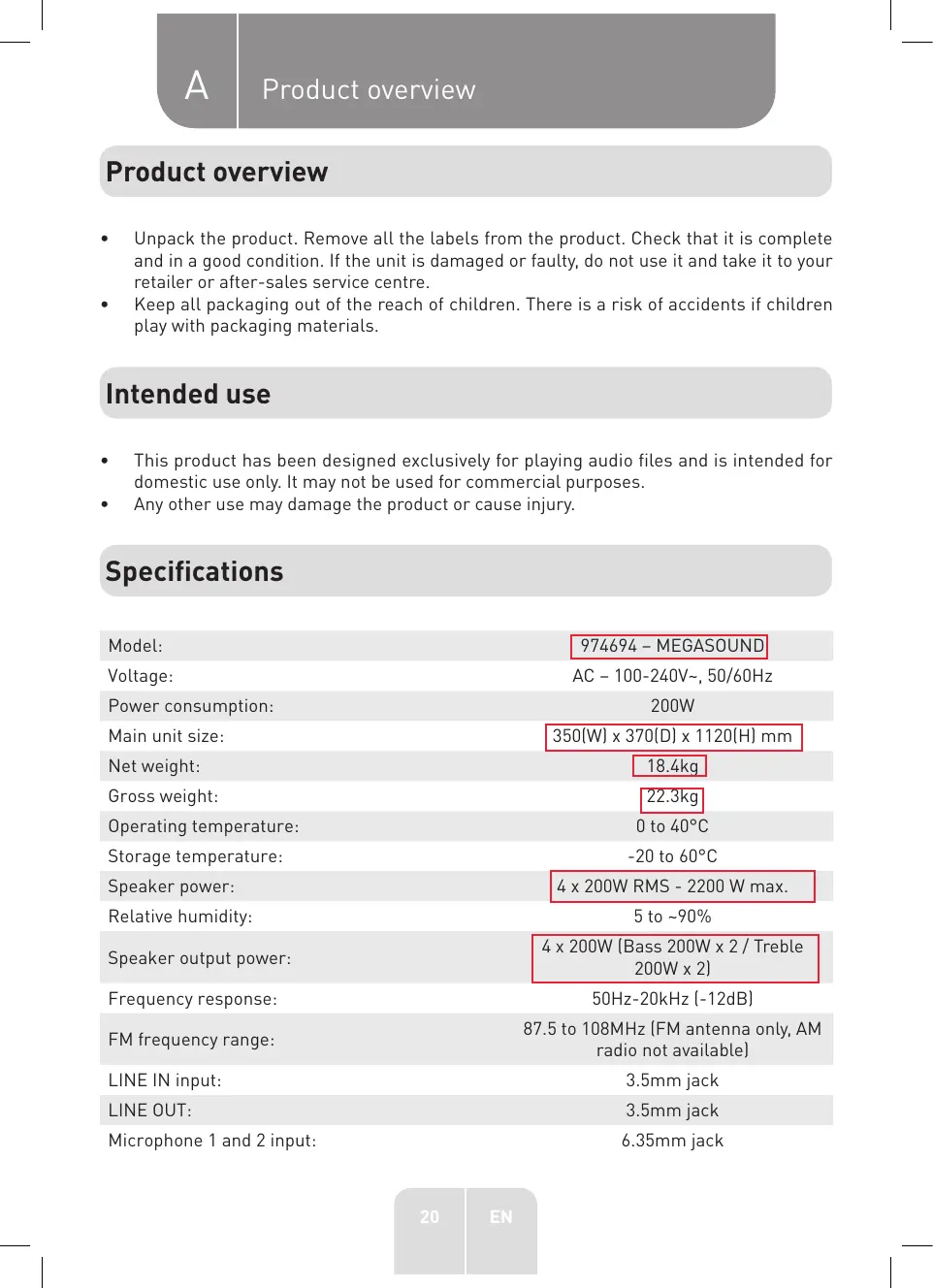 974694 - MEGASOUND) AC - 100-240V-, 50/60Hz