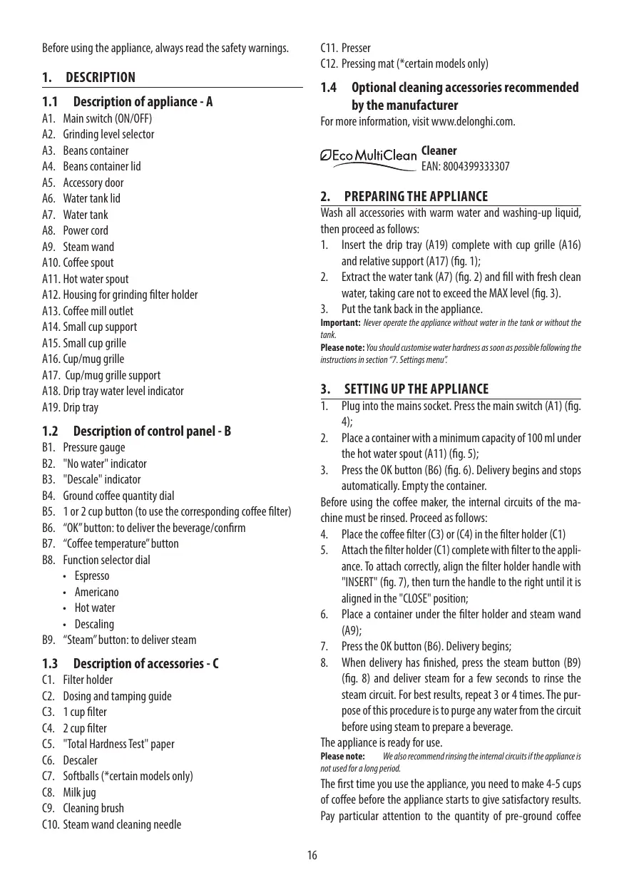 USER MANUAL EC 9155.MB PREMIUM DELONGHI