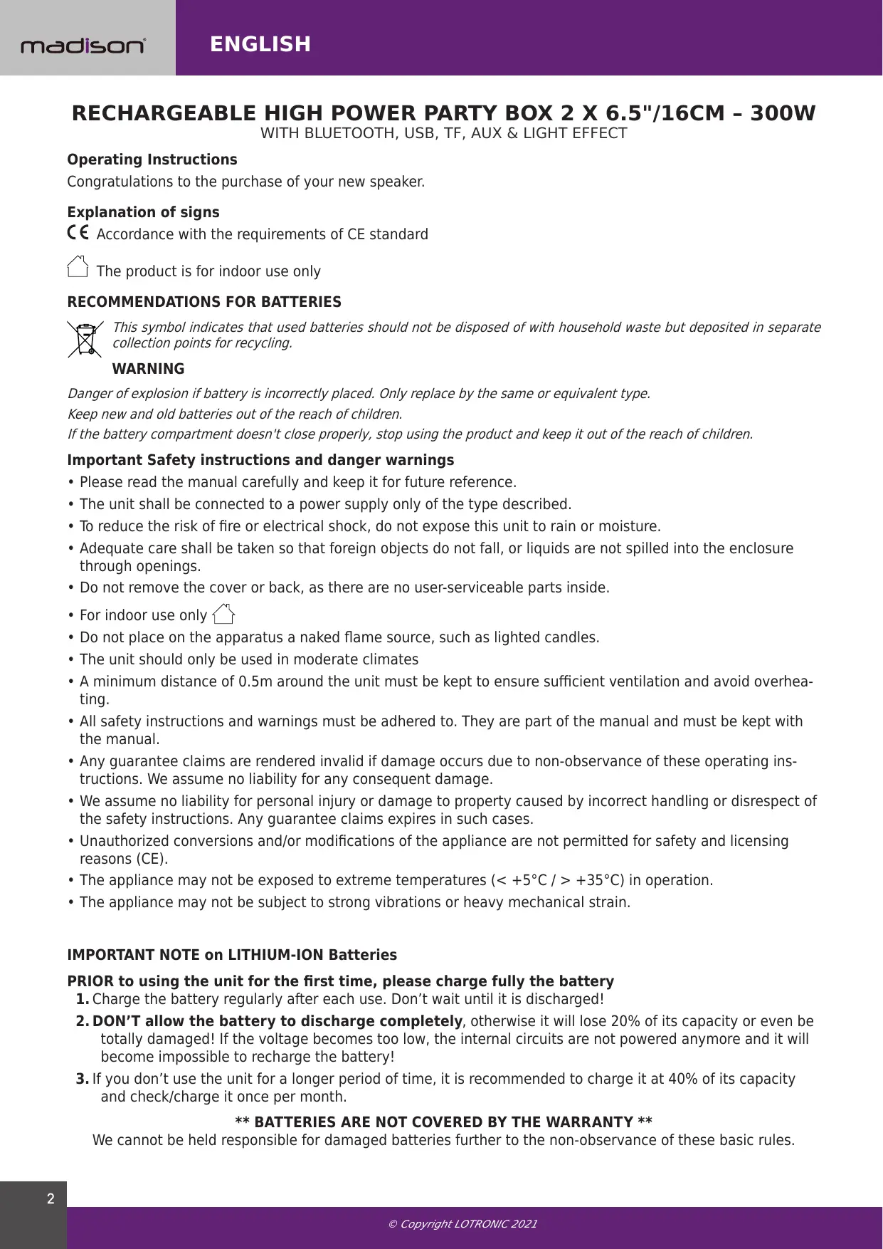 ** LES BATTERIES NE SONT PAS GARANTIES **