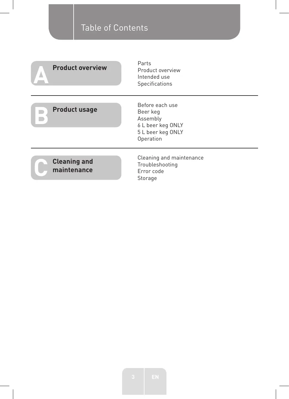 + Lisez et respectez les consignes de sécurité et de stockage indiquées sur le fût de bière, ainsi que toutes Les autres consignes du fabricant fournies avec le fût.