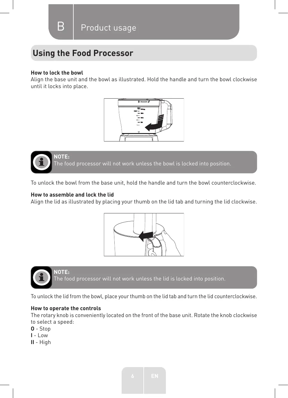 2. Installez et verrouillez Le bol sur Le bloc moteur {voir La section Verrouillage du bol).