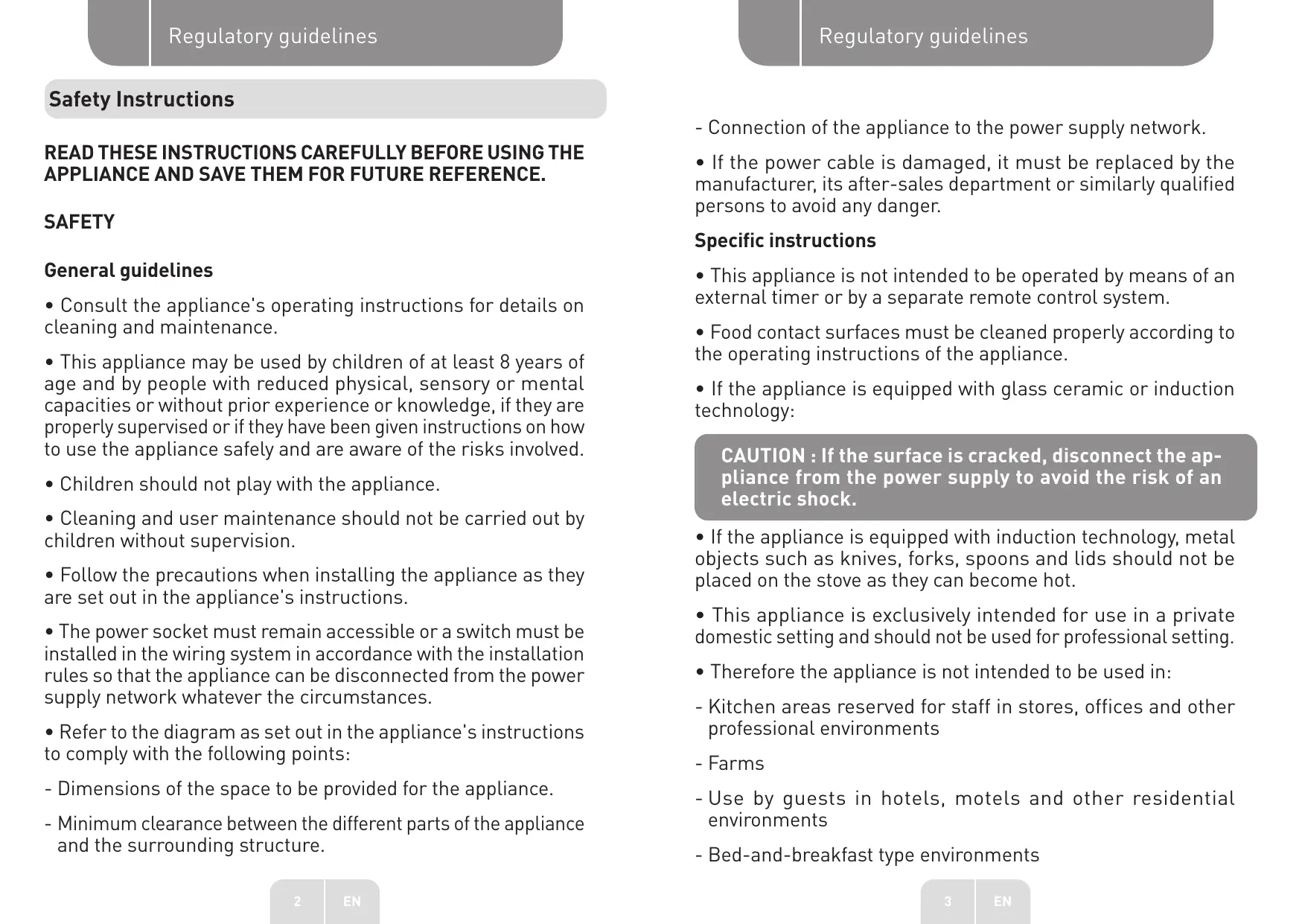 e IL convient de ne pas transporter l'appareil sur la face comprenant le verre (Si l'appareil dispose d'une technologie vitrocéramique ou à induction).