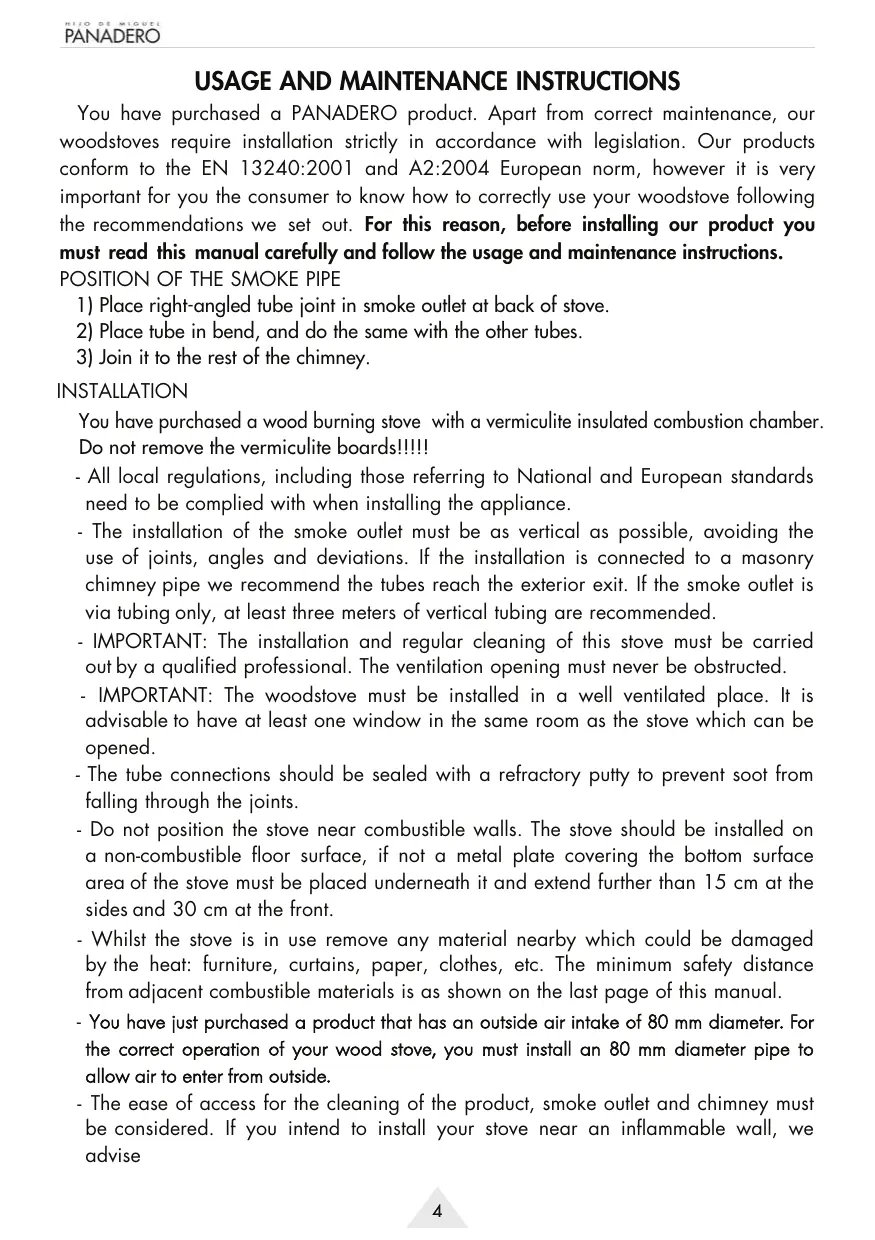 - Attention: l'installation de ce poêle à bois doit être effectuée par un professionnel qualifié.