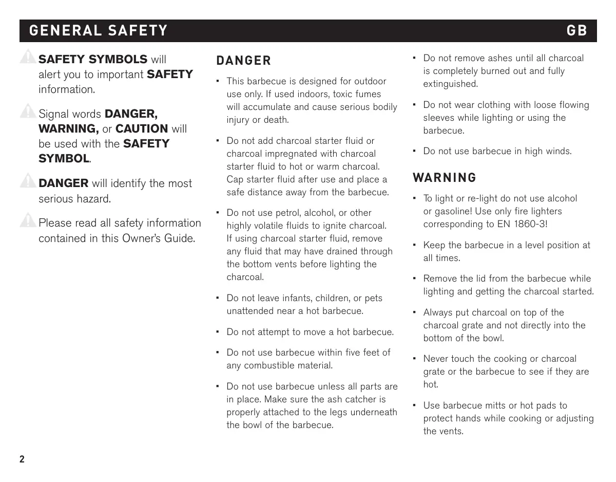 Download the instructions for your Barbecue in PDF format for free! Find your manual Compact kettle 47 noir - WEBER and take your electronic device back in hand. On this page are published all the documents necessary for the use of your device. Compact kettle 47 noir by WEBER.