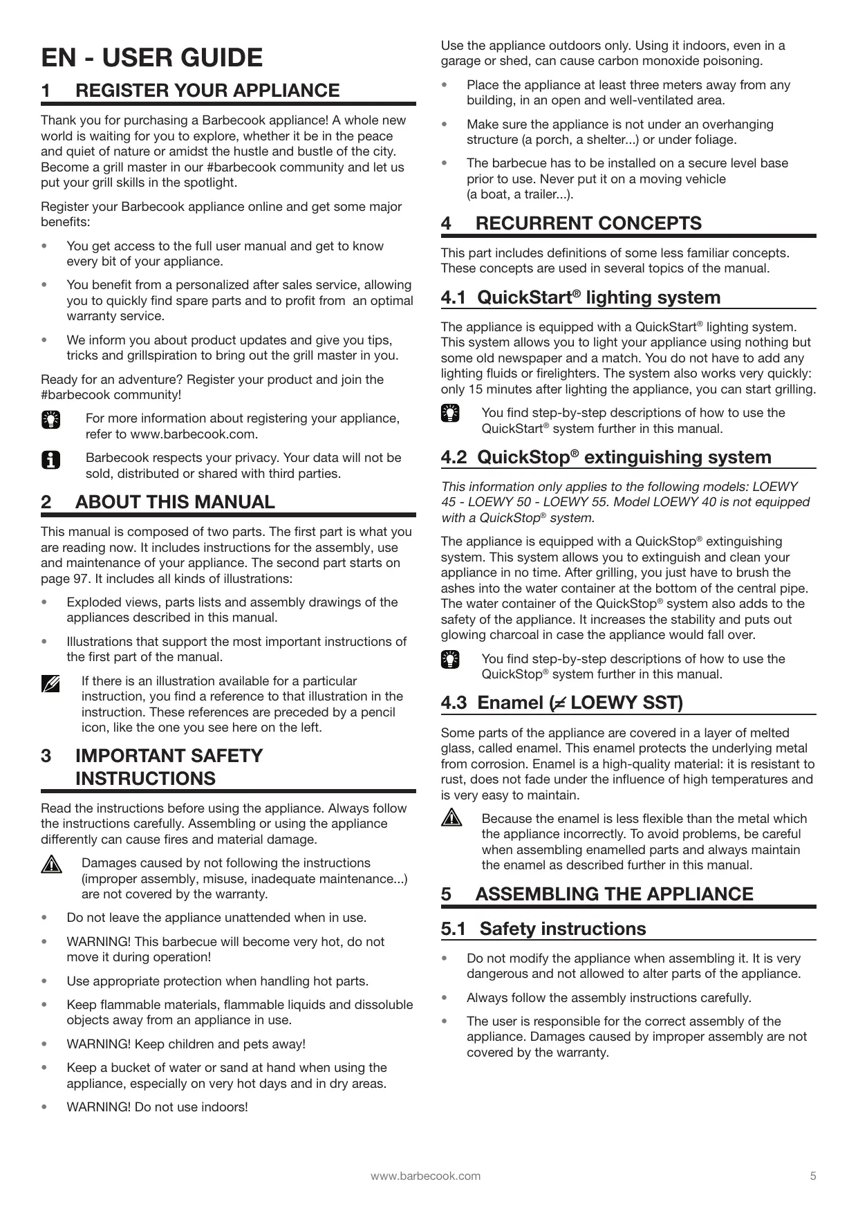 USER MANUAL LOEWY 40, LOEWY 45, LOEWY 50 / 50 SST, LOEWY 55 / 55 SST BARBECOOK