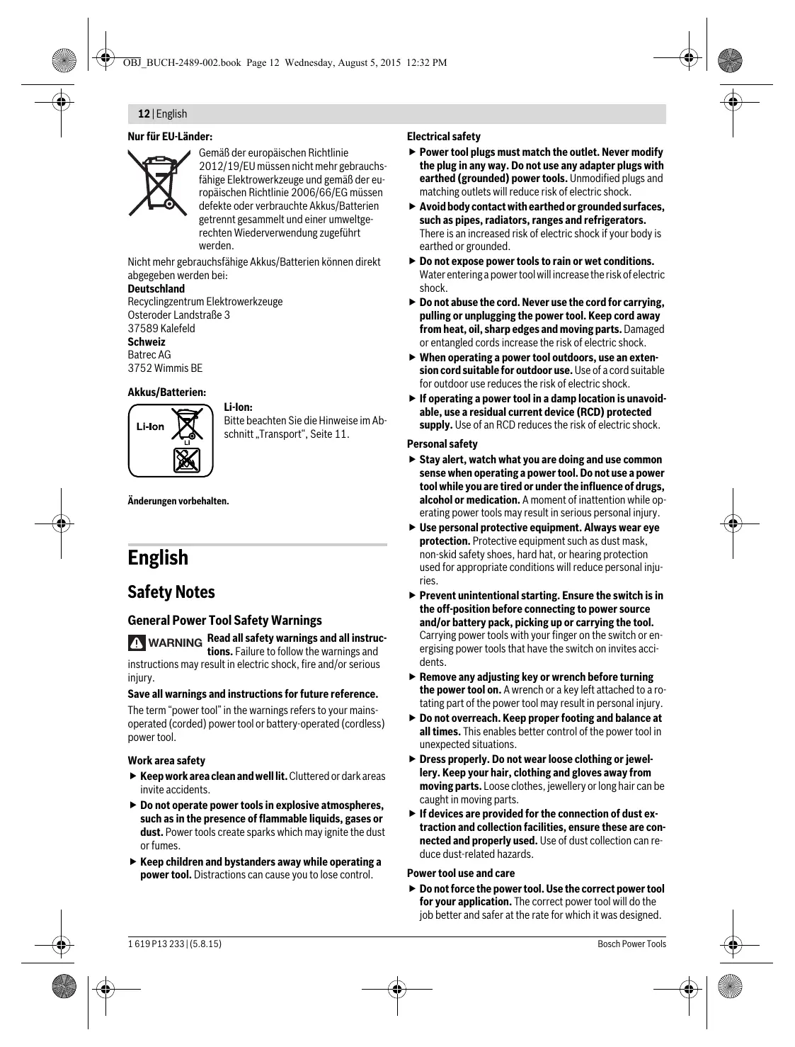 Ne jetez pas les outils électroportatifs etles accus/piles avec les ordures ménagères !
