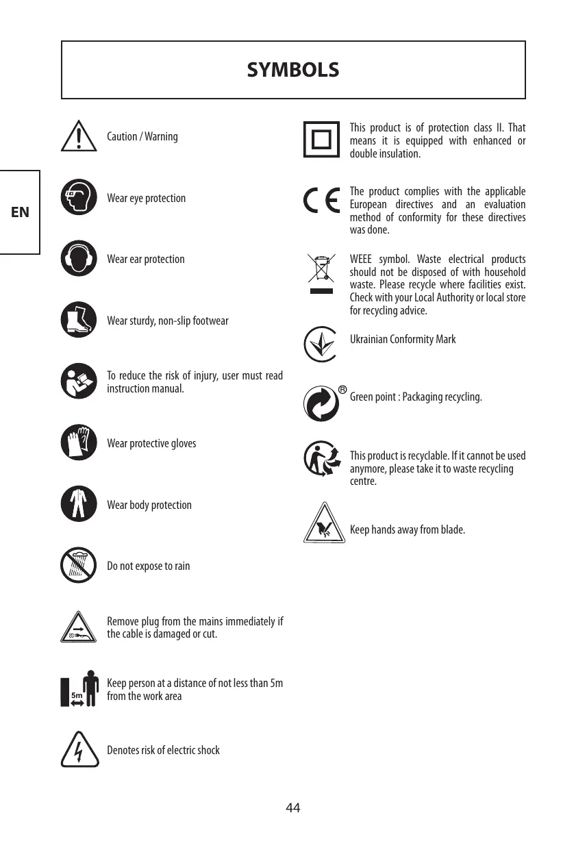 3.3 |Contratuerca 14 Casquillo de tiro 3.4 _|Engranaje grande 15 Cable/enchufe 3.5 __|Engranaje tambaleante 16 Funda del cable 3.6 _|Deflector de la hoja 17 (Tornillo EN 62841-4-2:2019 EN 62841-1:2015+AC:2015 ENIEC55014-1:2021 ENIEC55014-2:2021 ENIEC61000-3-2:2019 EN 61000-3-3:2013-+A1:2019 1EC62321-3-1:2013 IEC 62321-4:2013-+AMD1:2017 IEC 62321-5:2013 IEC 62321-6:2015 EN IEC 55014-1:2021 EN IEC 55014-2:2021 ENIEC61000-3-2:2019 EN 61000-3-3:2013-+A1:2019 1EC62321-3-1:2013 1EC62321-4:2013+AMD1:2017 IEC 62321-5:2013 IEC 62321-6:2015