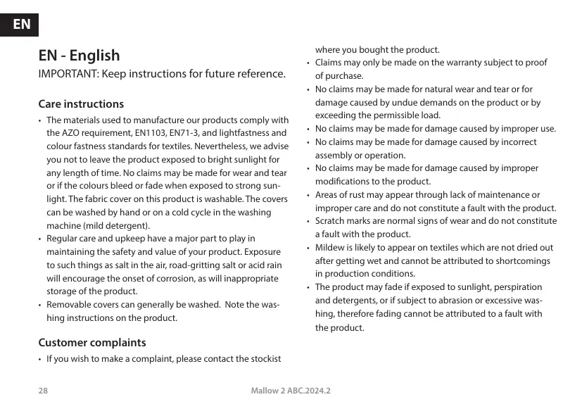+ Les housses amovibles peuvent généralement étre net- toyées. Respectez les consignes de lavage figurant sur votre produit.