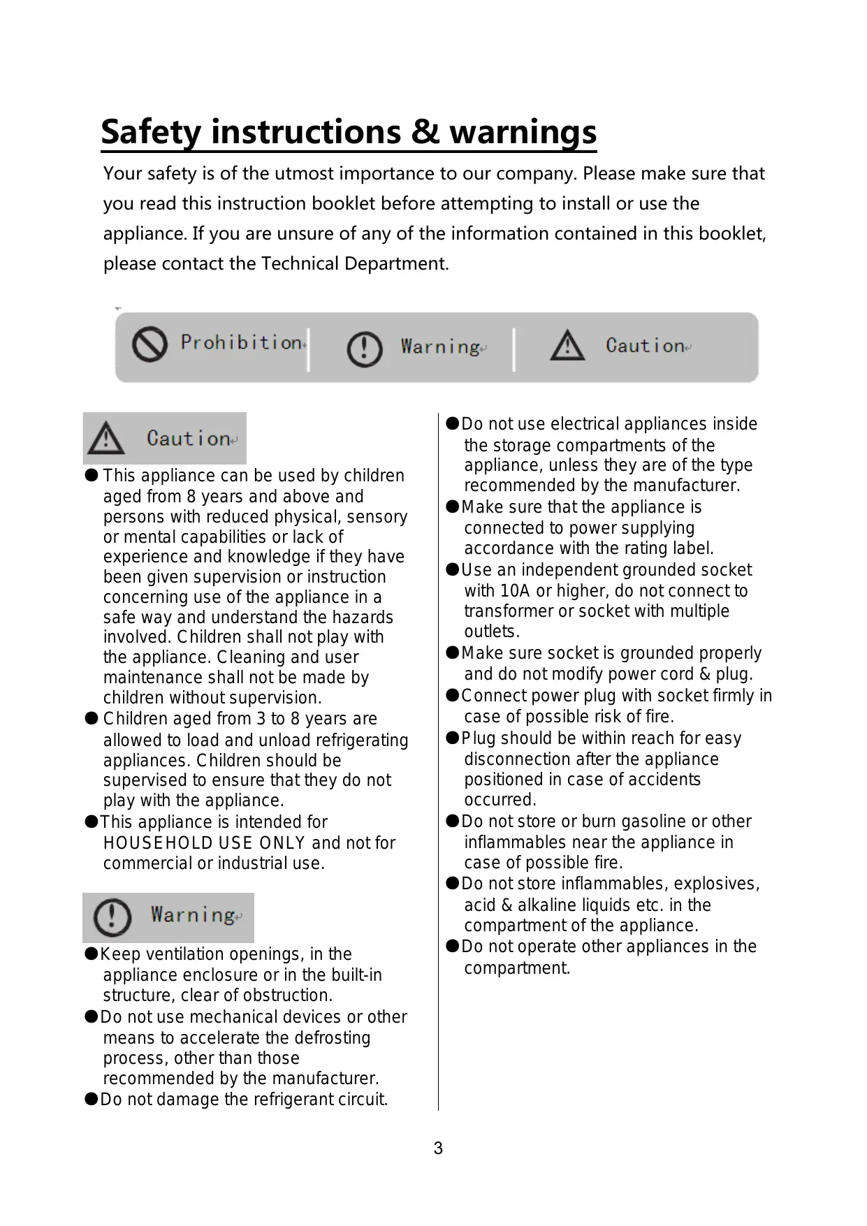 e Les enfants âgés de 3 à 8 ans sont autorisés à remplir et vider des appareils de réfrigération Les enfants doivent être surveillés pour s'assurer qu'ils ne jouent pas avec l'appareil.