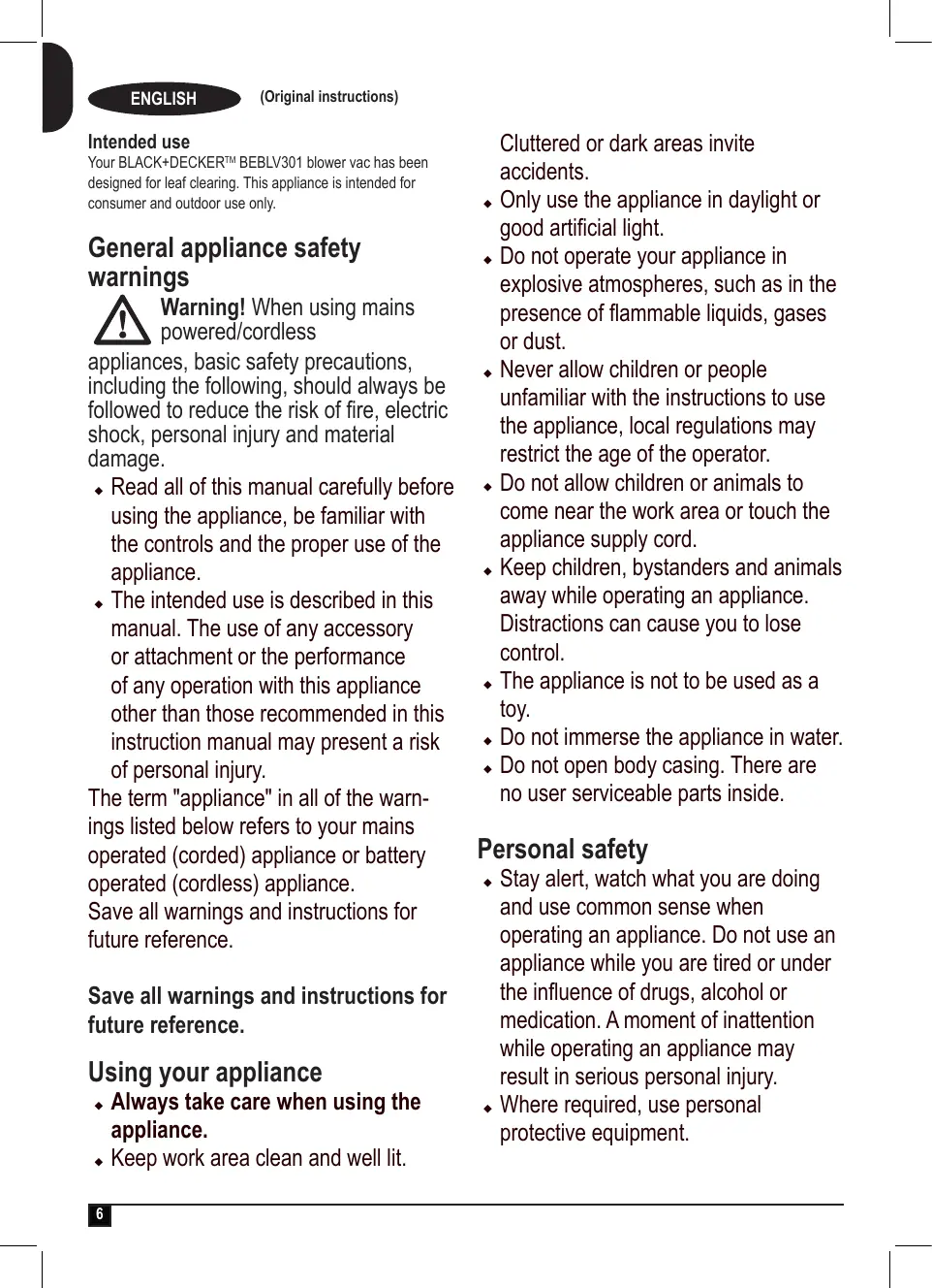 BEBLV301 - Aspirateur souffleur BLACK & DECKER - Free user manual and instructions