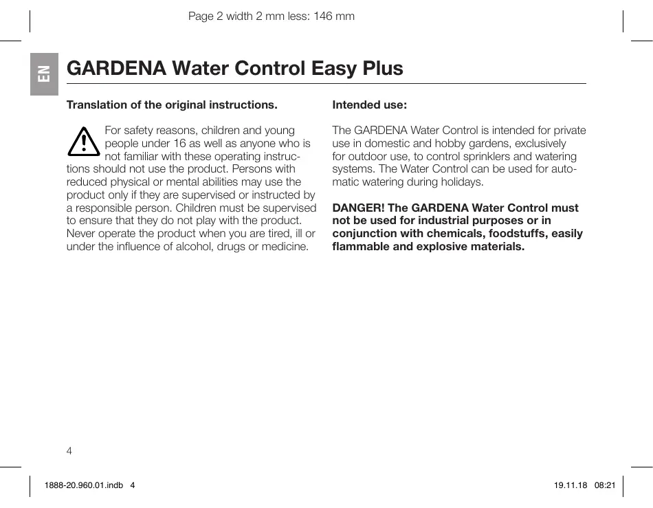 Find the device manual for free EasyPlus 1888 GARDENA in PDF.