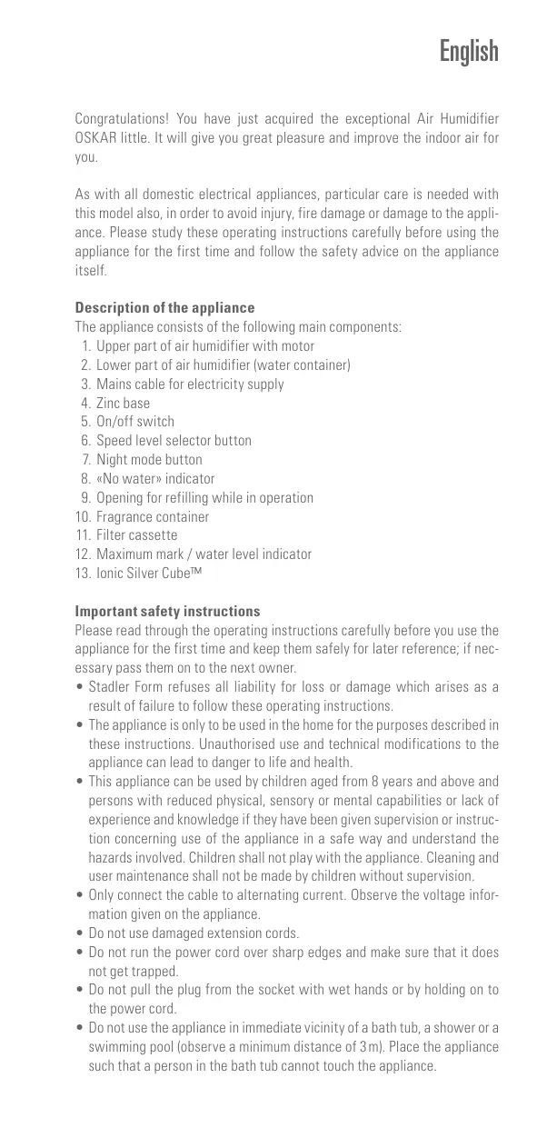 OSKAR LITTLE TITANIUM - Humidifier STADLERFORM - Free user manual and instructions