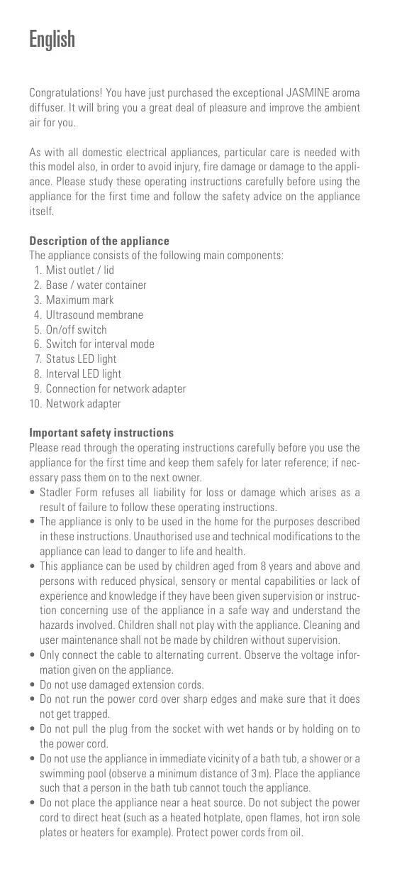 JASMINE TITANIUM - Essential Oil Diffuser STADLERFORM - Free user manual and instructions