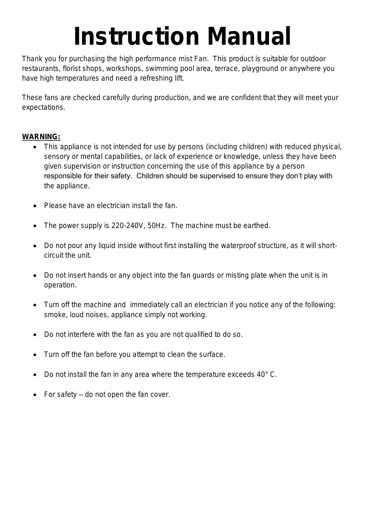 - Ne pas démonter le ventilateur si vous n'êtes pas qualifié pour le faire.