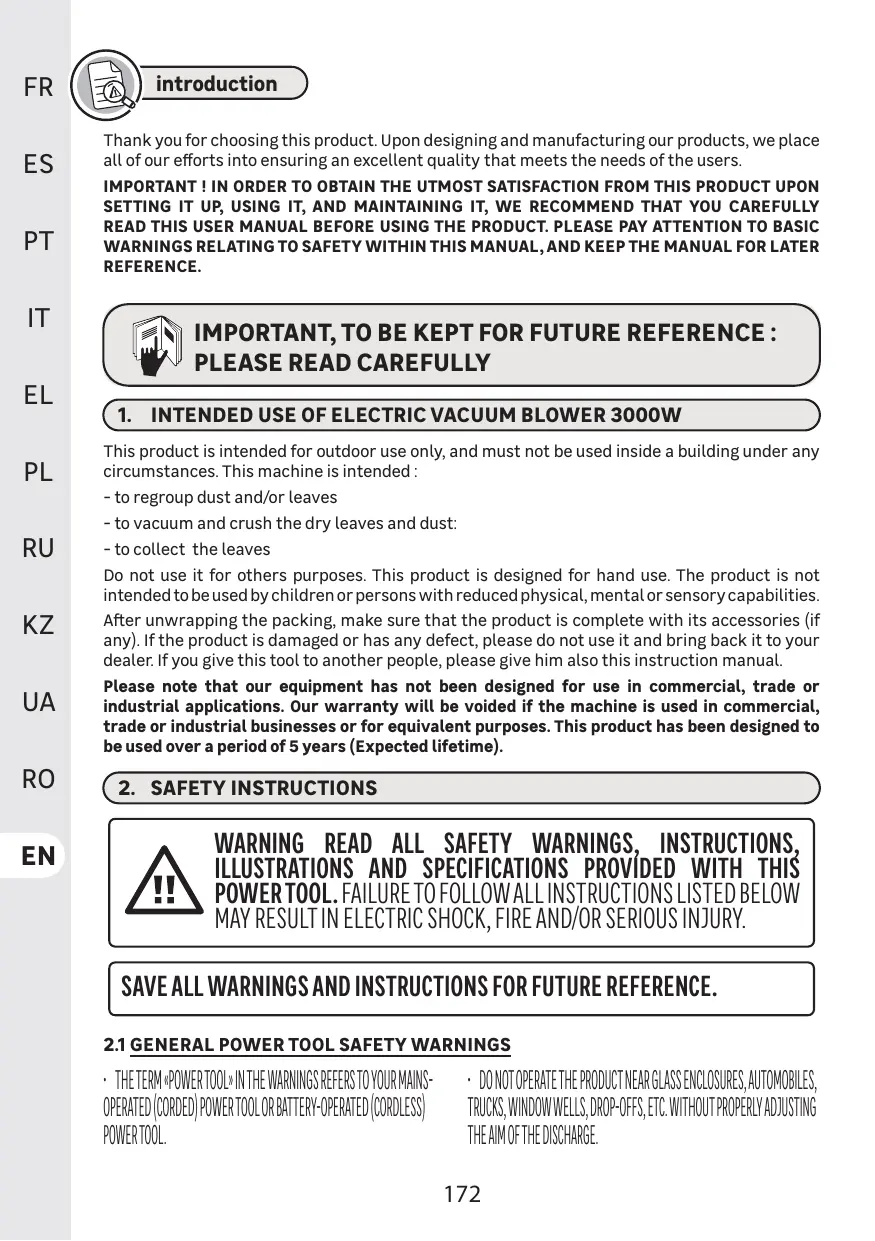 Blower 3000W EVB2.4 - Souffleur de feuilles STERWINS - Free user manual and instructions