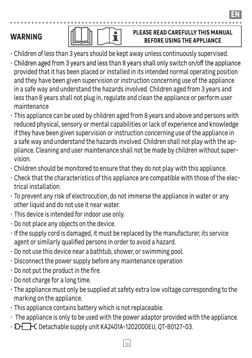 + ILconvient de surveiller Les enfants pour s'assurer qu’ils ne jouent pas avec l'appareil.