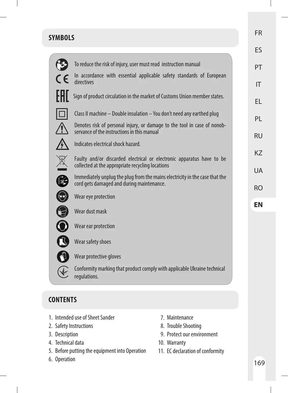 1. Domaine d'utilisation de la ponceuse vibrante 7. Entretien
