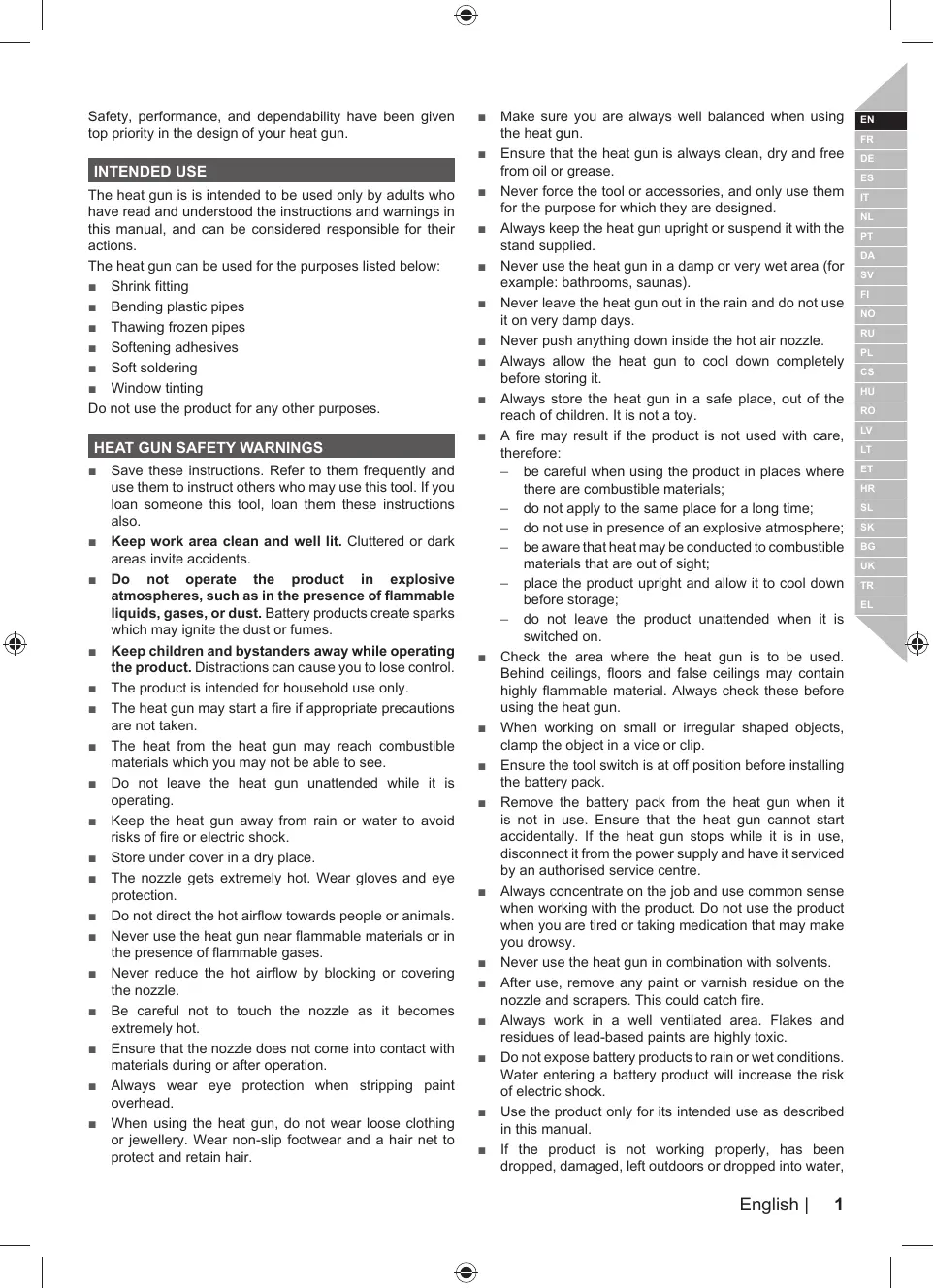 INTENDED USE The heat gun is is intended to be used only by adults who have read and understood the instructions and warnings in this manual, and can be considered responsible for their actions.