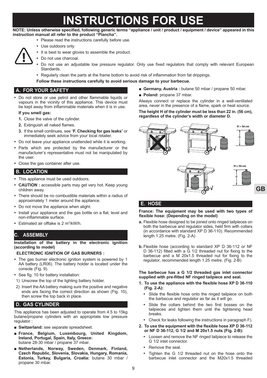 D. BOUTEILLE DE GAZ Cet appareil est réglé pour fonctionner avec les