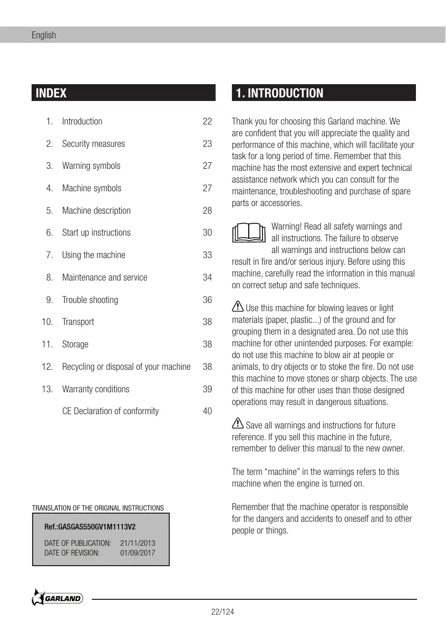 GAS 550 G - Aspirateur souffleur GARLAND - Free user manual and instructions