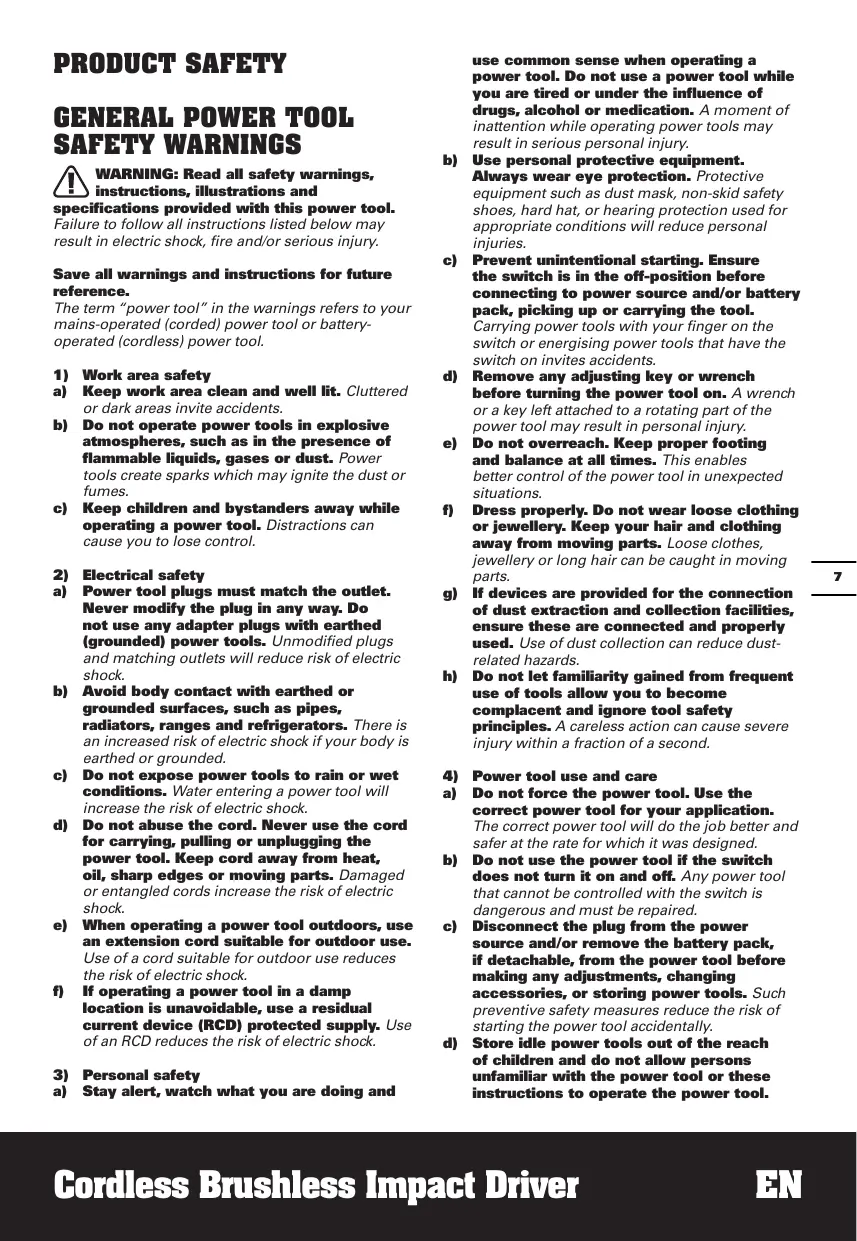 les écrous et les différentes fixations filetées. Cet outil n'est pas prévu pour être utilisé comme une perceuse.