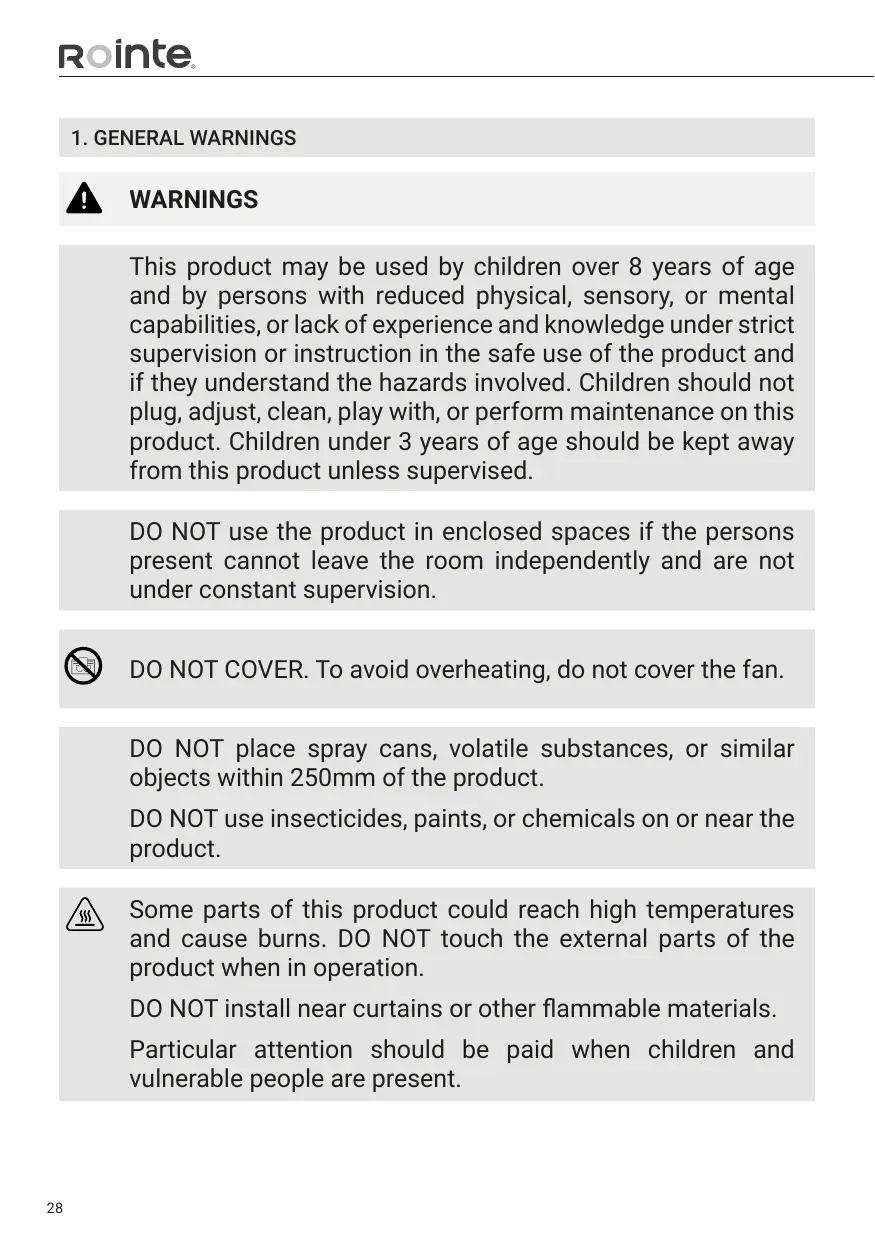 NE PAS installer près de rideaux ou d’autres matériaux inflammables. Une attention particulière doit être portée lorsque des enfants et des personnes vulnérables sont présents.