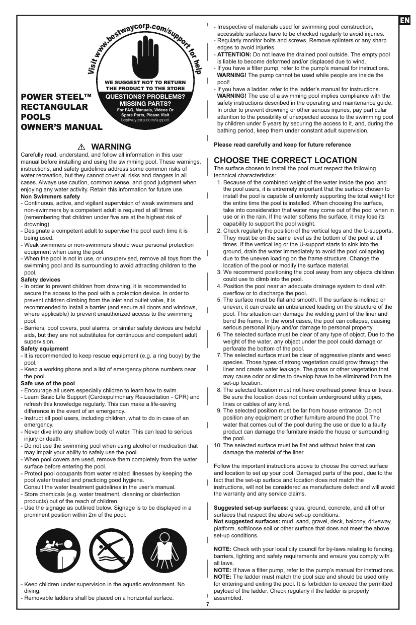 Download the instructions for your Piscine hors-sol in PDF format for free! Find your manual POWERSTEEL - BESTWAY and take your electronic device back in hand. On this page are published all the documents necessary for the use of your device. POWERSTEEL by BESTWAY.