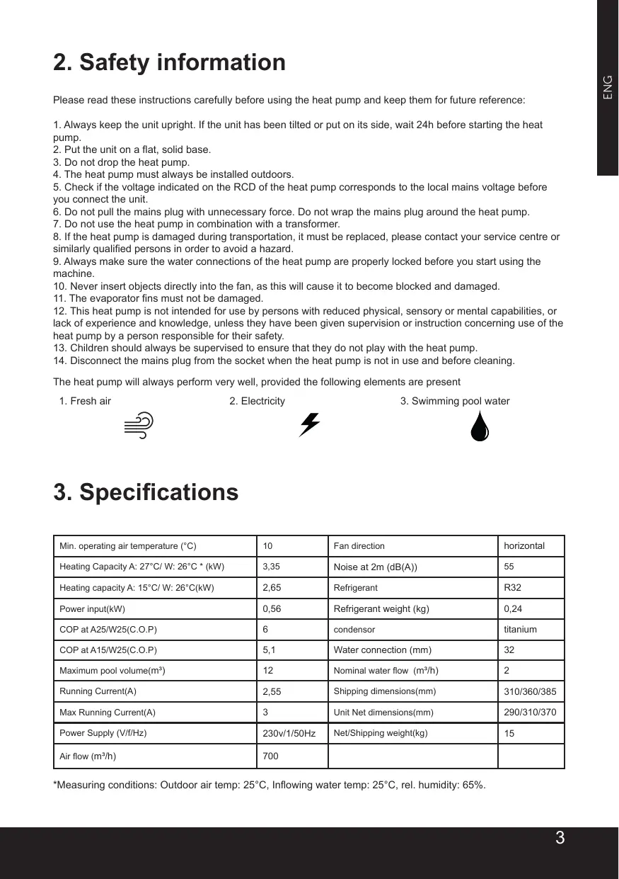 1. Air frais 2. Electricité 3. Eau de la piscine