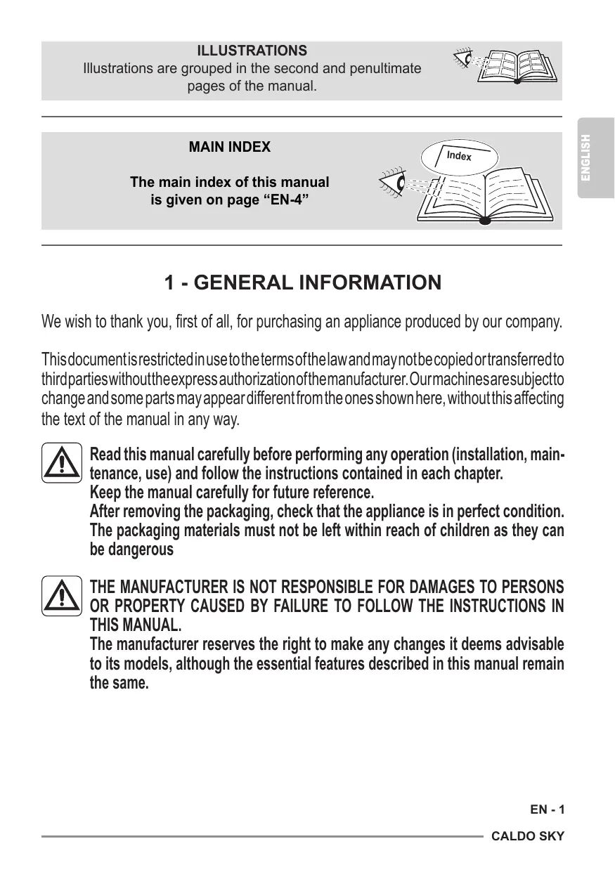 LE CONSTRUCTEUR DECLINE TOUTE RESPONSABILITÉ TOUCHANT LES DOMMAGES CORPORELS OU MATERIELS DECOULANT DU NON RESPECT DES INDICATIONS DU PRESENT MANUEL.