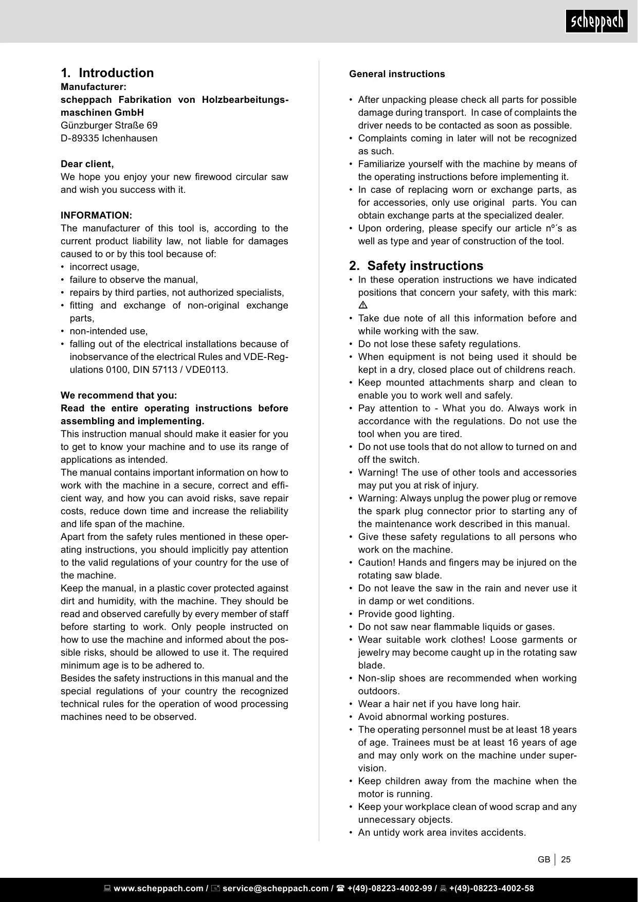 service@scheppach.com / & +(49)-08223-4002-99 / +(49)-08223-4002-58