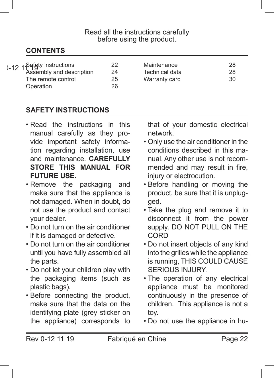 * Ne pas retirer la grille avant pour les opérations de nettoyage. S'assurer que le ventilateur est déconnecté du réseau avant toute opération d’en- tretien.